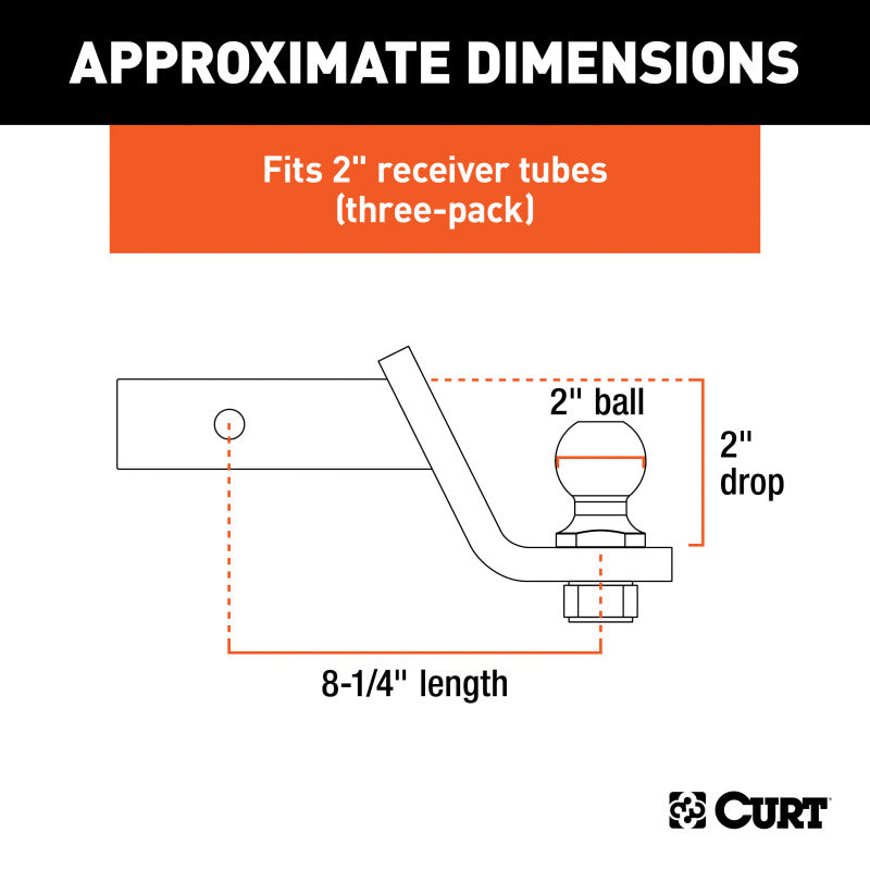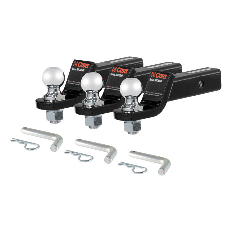 CURT 45037 Trailer Hitch Ball Mounts with 2-Inch Trailer Ball & Hitch Pin, Fits 2-Inch Receiver, 7,500 lbs. GTW, 2-Inch Drop, 3 Pack