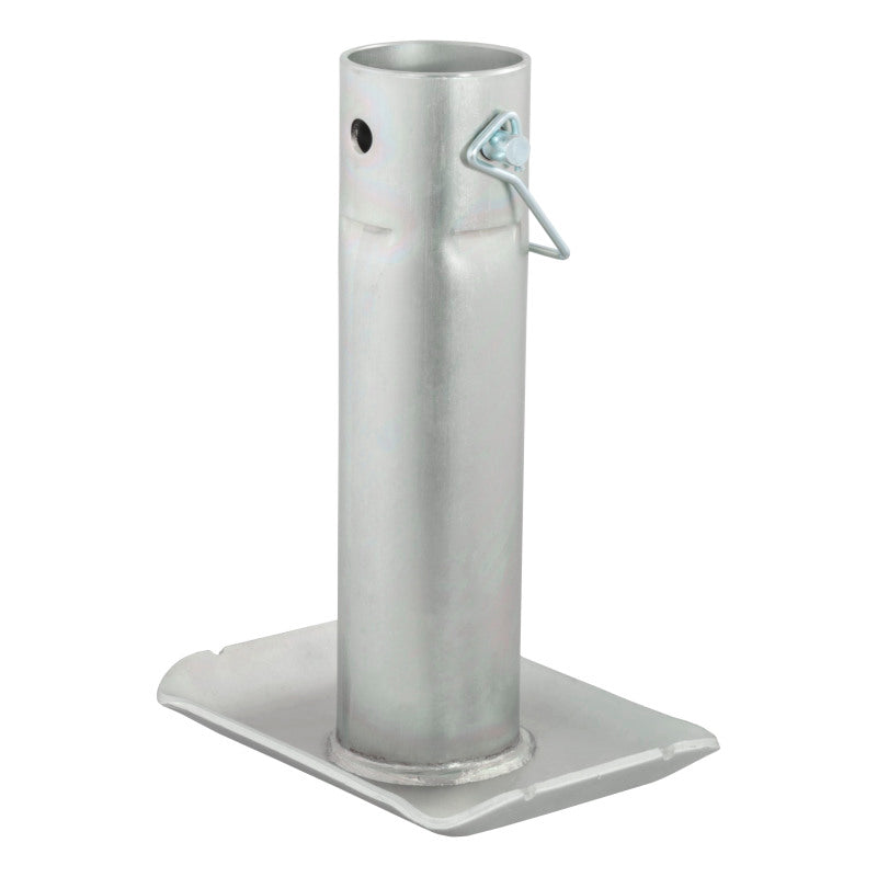 In our goal of being your best source for all things towing, the CURT line of trailer jacks is designed with care and manufactured with pride. CURT jacks are made with quality to promote the life and function of your trailer, and they come in several different styles to accommodate your needs, whether you are a frequenter of the boat landing, the campground, the racetrack or the field. Add stability and support to your trailer jack and trailer with a CURT jack foot. This hardy steel jack attachment features a simple safety pin mounting system and can be used on a number of CURT jacks and many competitive models. It measures 8-1/2" tall, has a weight capacity of 2,000 lbs. and is designed for 2" diameter tubes. It does not matter what kind of trailer you tow -- a boat trailer, utility trailer, livestock hauler or recreational vehicle trailer -- if you have a receiver-style trailer, you will want a jack that complements its function. For a trailer jack that will not steer you wrong, CURT has the answer.