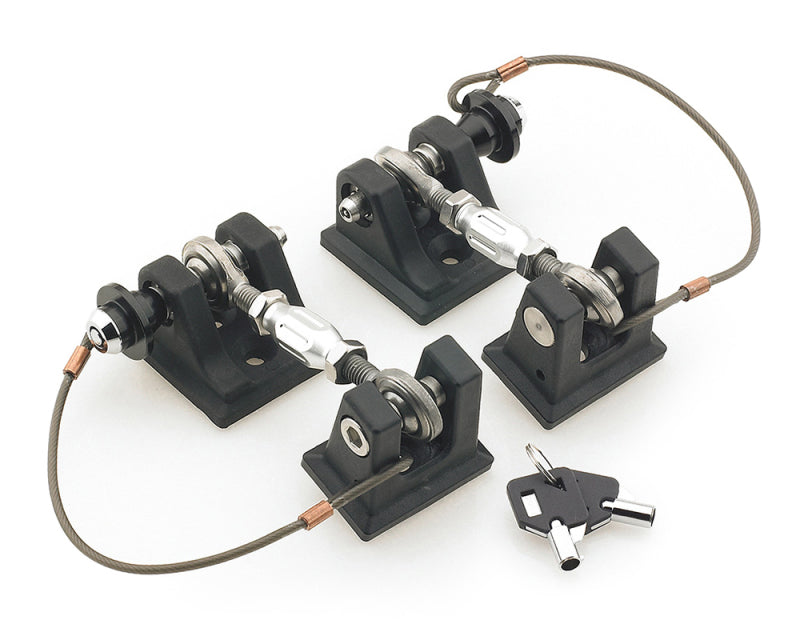 Ever drive down the road and notice a little flutter in your Jeep's hood? Have you replaced the stock, rubber hood hold downs that came with your Jeep? DV8's race-inspired, lockable hood hold downs feature a billet aluminum turnbuckle and stainless steel heim joints and prevent any unwanted, underhood tampering or theft when you're away from your Jeep. The quick-release push pin provides easy access to opening your hood and won't be lost thanks to the attached, stainless steel lanyard. NOTE: Designed to work with the stock fender and hood - may not work with all aftermarket hoods, fenders and fender flairs.