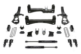 Fabtech?s Basic lift kit features our world renowned IFS suspension design for the Chevy/GMC 1500 2WD providing excellent drive ability both on and offroad. There is zero bump steer throughout the suspension cycle that helps reduce drive fatigue while improving the overall drive ability of the vehicle. The near stock track width keeps the tires under the fenders for a clean appearance. Fabtech?s proprietary steering knuckle geometry provides excellent lock to lock turning radius to maneuver in tight spots. Heavy duty 1/4? thick steel crossmembers feature OE style alignment cam pins that utilize the factory cams for easy adjustment. The factory coilover shocks are relocated from the bottom to allow for full steer while achieving 6? of lift. Rear lift is accomplished with a 5? Block and u-bolt system. Fabtech has addressed all aspects of the suspension for proper wheel travel and lock to lock steering without over cycling. Comes with a free 5 year 60,000 mile Powertrain Warranty. FEATURES: 1/4? thick steel lower control arm Crossmembers are arched for maximum ground clearance. The welded box design of these Crossmembers provides additional strength to the front suspension. Retains factory alignment cams for easy adjustment. Fabtech?s extended length ductile iron Steering Knuckles provide zero bump steer throughout the suspension travel. This provides an enhanced driver experience compared to stock. Near stock track width keeps the tires under the fenders for a clean appearance. Oversized tie rods are provided to replace the stock units that are designed to handle oversized tires. The factory Coilovers are relocated with heavy duty lower mounts to lift the vehicle while retaining the stock ride quality. 1/4? thick steel drop brackets reposition the front sway bar for the increased ride height. This allows the sway bar link ends to fully cycle without binding throughout the extended travel range. Billet spacers relocate the factory closed cell bump stops to c