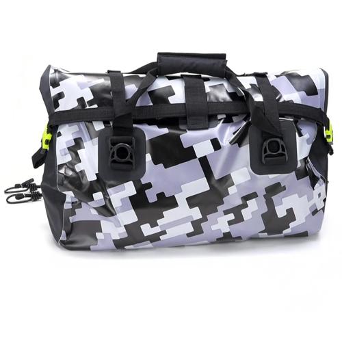 EA115CM Large waterproof saddle bag, 40 ltr, grey and yellow camouflage pattern.