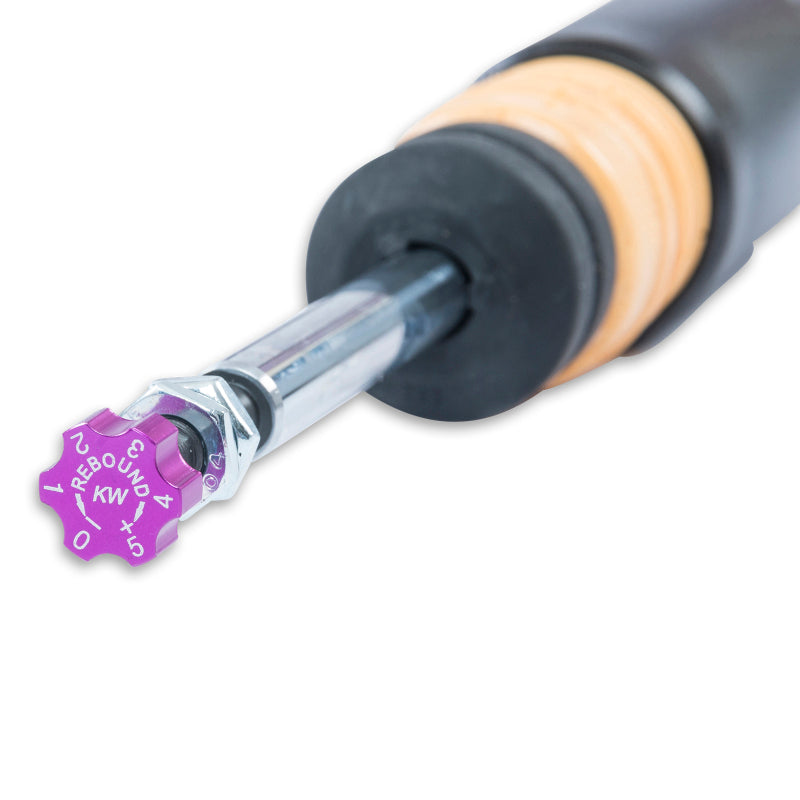 KW Variant 2 INOX-LINE coilovers are the perfect solution for drivers who want more than just outstanding looks and adjustable ride height. In addition to stainless steel coilover struts, and corrosion-resistant components built for long term durability, KW Variant 2 coilovers utilize TVR-A (Twin Valve Rebound - Adjustable) technology -o allow Adjustment -f the rebound damping characteristics with 16 clicks so you can fine tune the ride comfort or performance to your satisfaction. As with all KW coilovers our engineers develop vehicle specific damper settings that undergo comprehensive testing on the Nurburgring Nordschleife and in our KW 7-post Driving Dynamic Test Center. With a KW coilover kit the driving experience is more dynamic and direct. With the rebound adjustability you have more direct influence on the handling or comfort of the car. With 16 precise clicks you can adjust the KW dampers (more firm or more comfortable) without affecting the compression damping fine-tuned by our engineers. The two-stage, patented TVR-A (Twin Valve Rebound - Adjustable) technology -nables a small volume of oil flow through an adjustable, conically shaped, low-speed bypass during low damper speeds, while at high damper speeds, the main rebound stage valve opens allowing a larger volume of oil to flow. This provides a big improvement in terms of ride comfort without influencing the high-speed range. There are 16 precise clicks available for individual settings, so you can choose between more comfort or more body control. For over 20 years, KW automotive has been the market leader and driving innovation as a manufacturer of individual suspension solutions for the road and in all types of motorsports. No matter where in the world, gearheads, automobile manufacturers and reputable tuners rely on our KW coilovers made in Germany. With an application list comprising more than 4,600 options KW guarantees an outstanding selection backed by our Limited Lifetime Warranty.