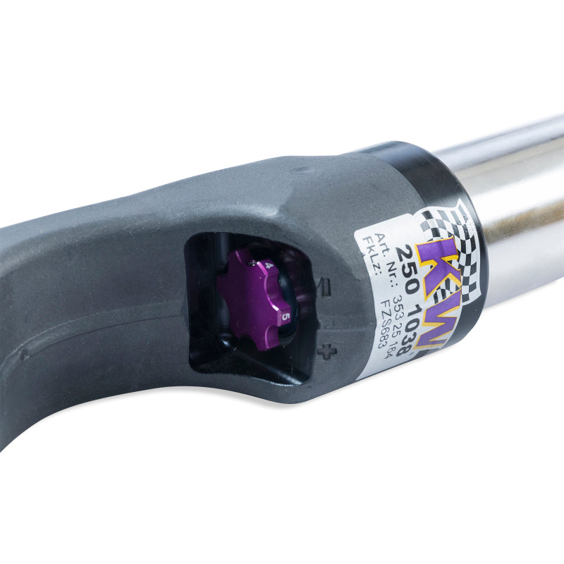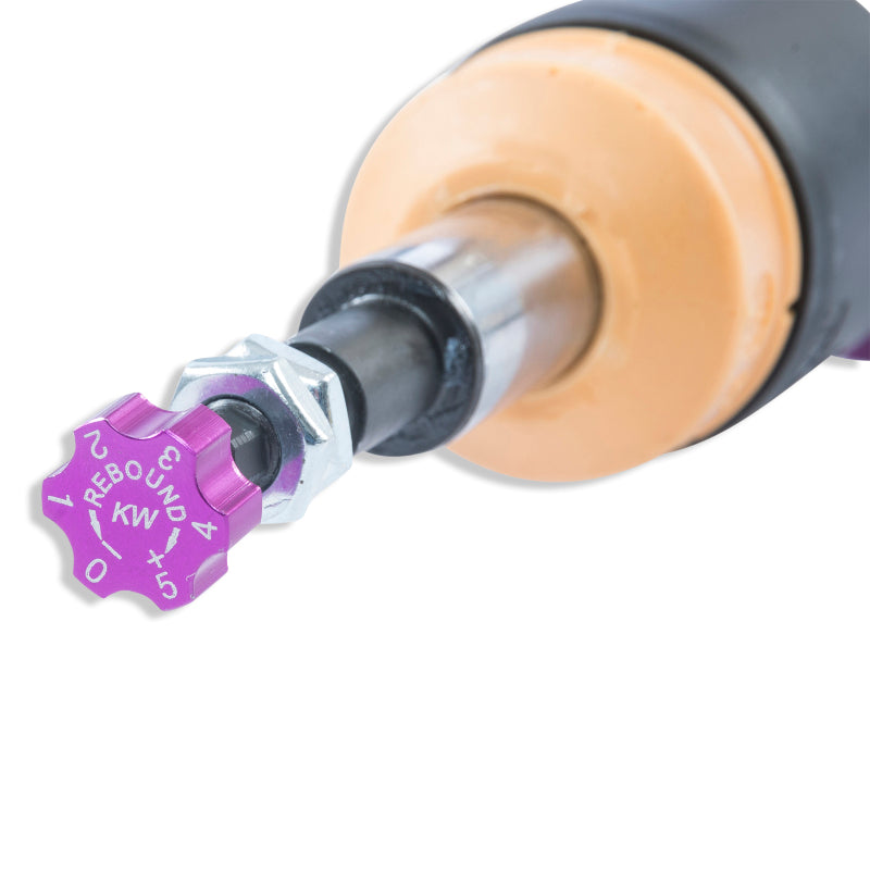 Unparalleled street performance bred from motorsports heritage, the patented KW-valve technology -or the separate Adjustment -f rebound and compression damping, allows you to individually adapt the vehicle-specific base setup.
