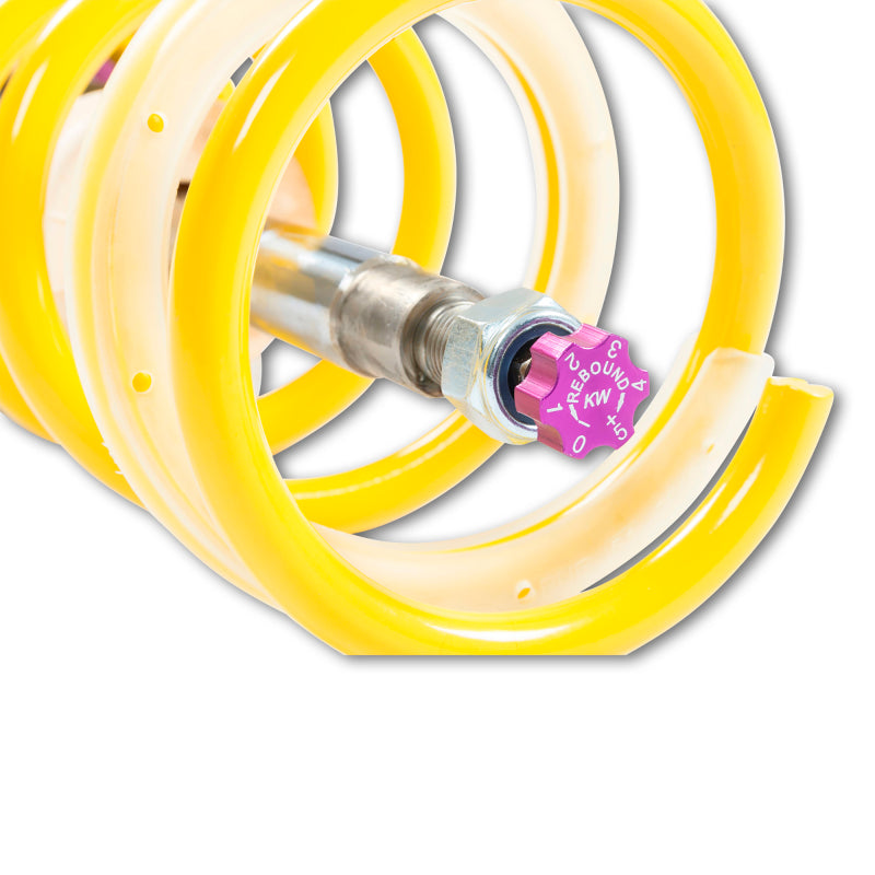 Unparalleled street performance bred from motorsports heritage, the patented KW-valve technology -or the separate Adjustment -f rebound and compression damping, allows you to individually adapt the vehicle-specific base setup.