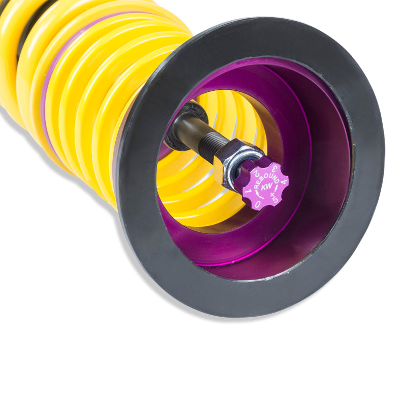 Unparalleled street performance bred from motorsports heritage, the patented KW-valve technology -or the separate Adjustment -f rebound and compression damping, allows you to individually adapt the vehicle-specific base setup.