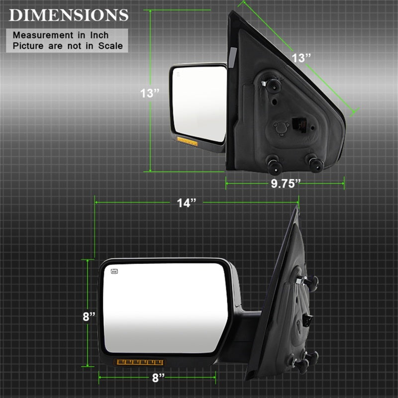 XTune Door Mirror Fitment: Ford F-150 FX4 2004 Ford F-150 FX4 2005 Ford F-150 FX4 2006 Ford F-150 Harley-Davidson Edition 2006 Ford F-150 King Ranch...
