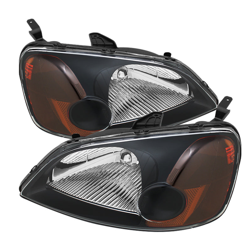Xtune Honda Civic 01-03 2/4Dr Amber Crystal Headlights Black HD-JH-HC01-AM-BK