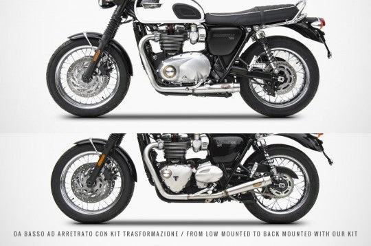 Zard Exhaust - Low Mounted Dual Outlet Exhaust with OEM Catalyst for 2016+ Triumph Bonneville T100, T120
