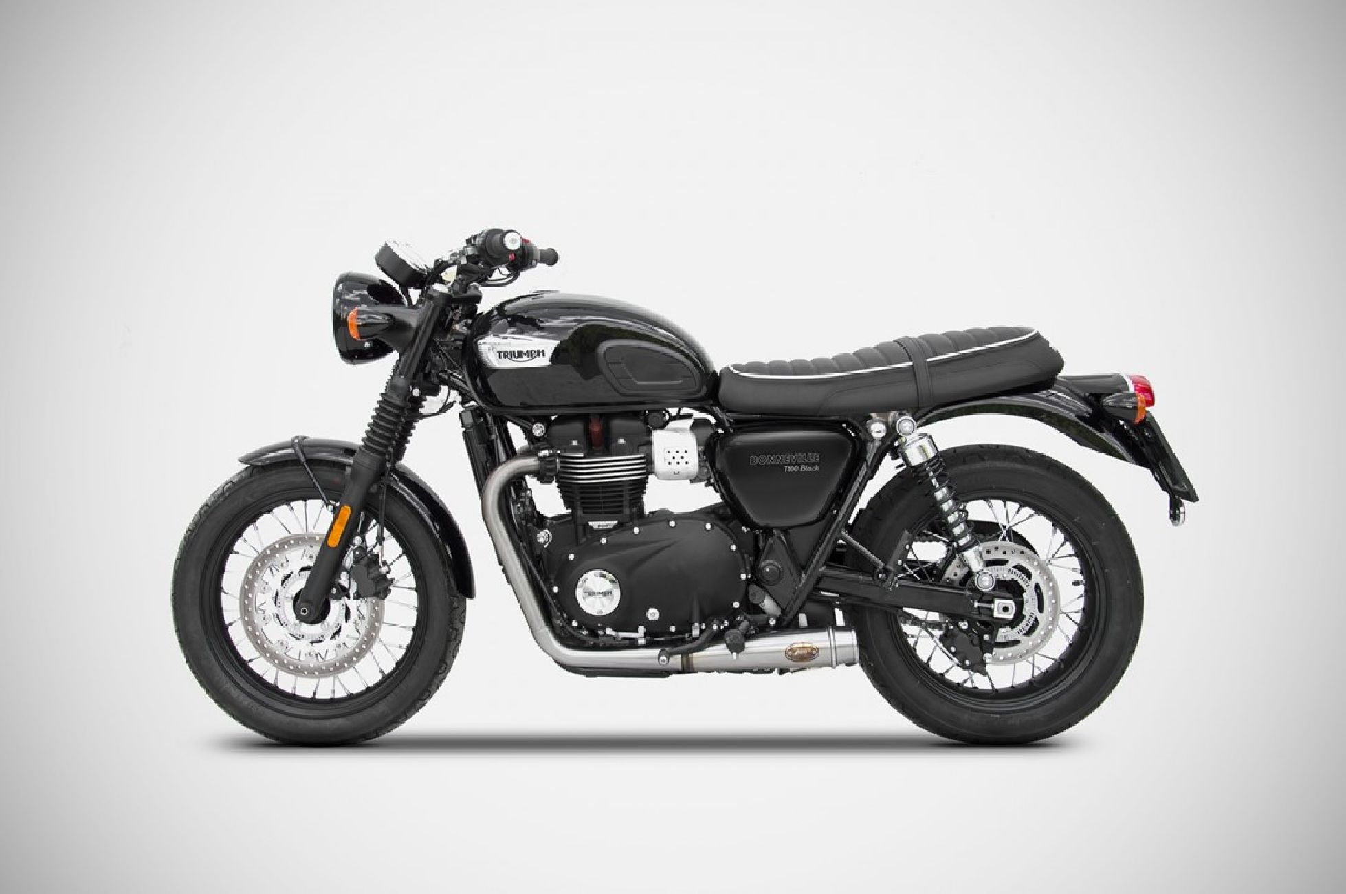 Enhance your 2016+ Triumph Bonneville T100 or T120 with the Zard Low Mounted Dual Outlet Exhaust. OEM catalyst compatible, huge weight saving, and aggressive sound. Shop now!
